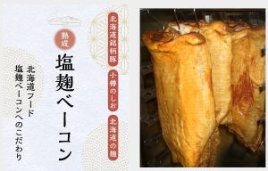 北海道フードのホームページにアクセスいただき誠にありがとうございます。この度、当社製品『熟成塩麴ベーコン』が札幌商工会議所「北のブランド2024」認証を取得しました。北海道の原料だけで作ったからだにやさしいベーコンです。 […]