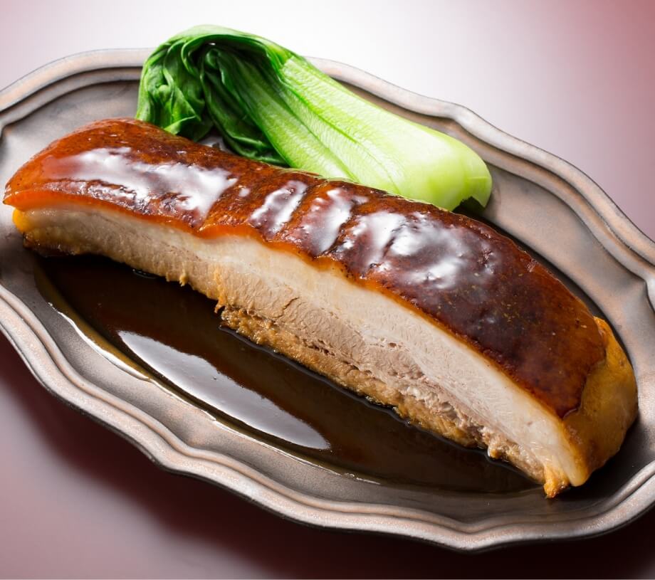 トンポーローは皮付豚バラ肉を酒や醤油で煮込んだ中華料理です。 時間をかけて丁寧に煮込むことで、箸でお肉が切れるほど柔らかく仕上がります。調味料を「醤油と砂糖のみ」にすることで豚バラ肉の旨味を最高に引き出しました。 特に皮の部分(コラーゲン)と肉の境目がとろける食感です。